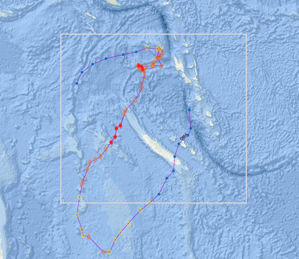 Du 16 au 18 février, OMA a repris sa trajectoire vers le sud-ouest, en direction de la Nouvelle-Calédonie, et s’est intensifié.