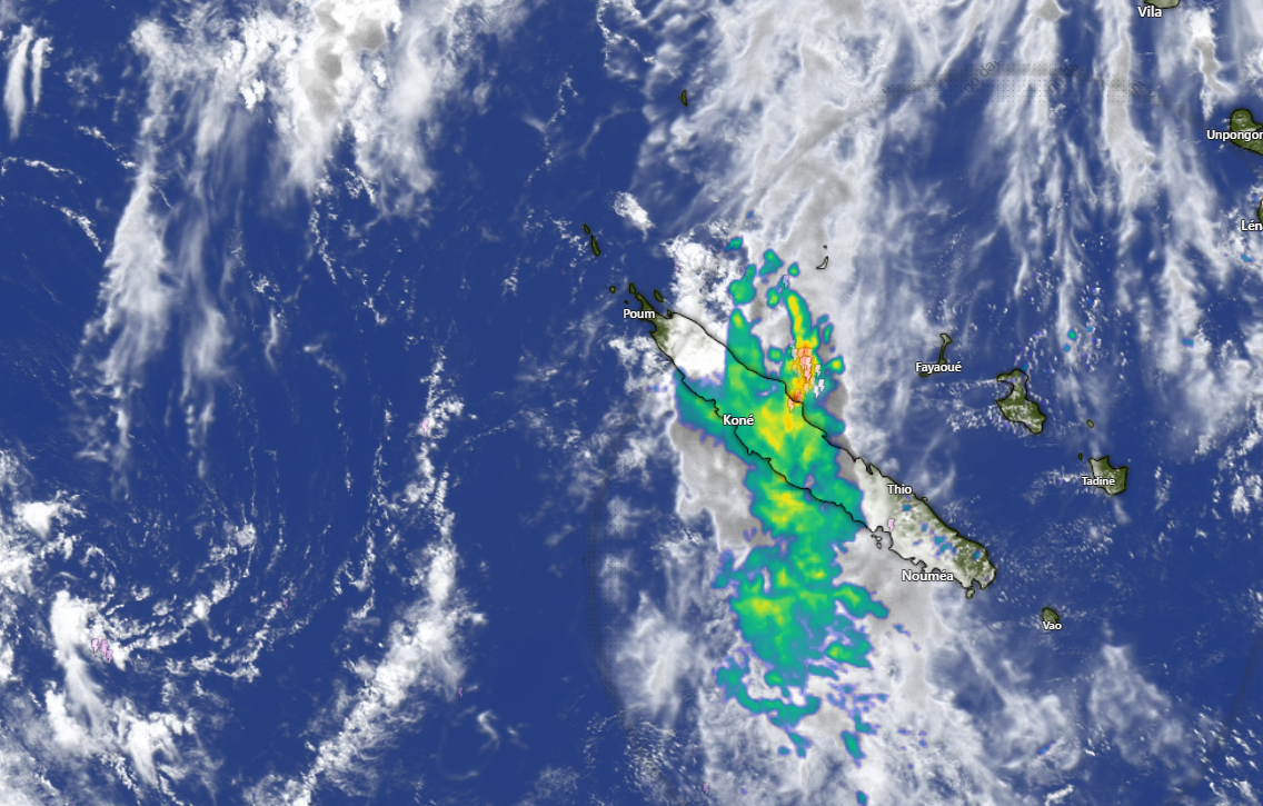 La Nouvelle-Calédonie reste sous l’influence d’un minimum dépressionnaire qui engendre de fortes pluies sur le pays. Ce mercredi, les fortes pluies orageuse se poursuivent notamment autour d’un axe Houaïlou-Bourail. De forts cumuls et d’importantes inondations sont en cours.