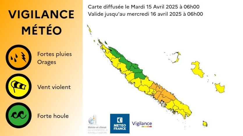 – Vigilance orange Fortes pluies-Orages sur Kouaoua, Canala, Thio, La Foa et Boulouparis ce matin.