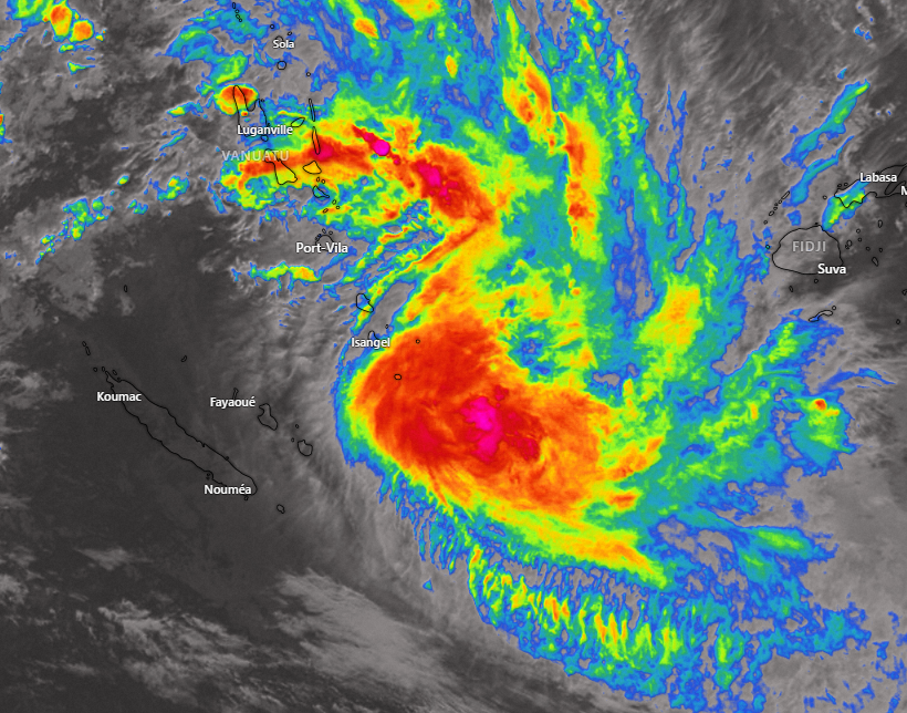 La dépression SERU s’est rapidement formée à l’Est du Vanuatu et a atteint le stade de dépression tropicale forte. SERU se déplace vers le sud-est à 20 km/h. Sa pression au centre est estimée à 986 hPa. Elle génère des rafales proches de 130 km/h. Elle rencontre des conditions défavorables notamment du cisaillement (vent fort en altitude) et va donc s’affaiblir en s’éloignant. Elle n’impacte pas la Nouvelle-Calédonie.