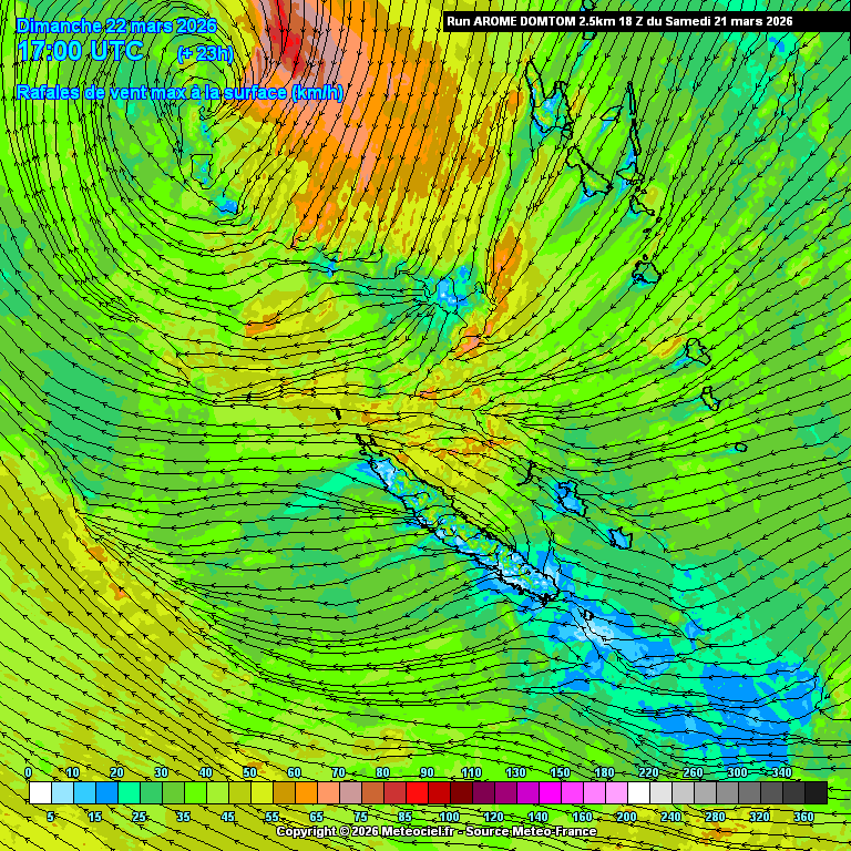 Bien que le phénomène dépressionnaire soit pour le moment d’une faible intensité, une importante dégradation du temps se met en place sur la Nouvelle-Calédonie : Sur le nord, des vents à 35 noeuds, avec des rafales de l’ordre de 100 km/h sont possibles à partir de la fin de journée de ce lundi. Attention aux fortes pluies également, en effet, sur le Nord et la côte Est des cumuls de 150 à 200 mm sont prévue en 24 heures selon Météo France. Les cumuls sont moins importants ailleurs, mais suffisants pour créer des inondations.