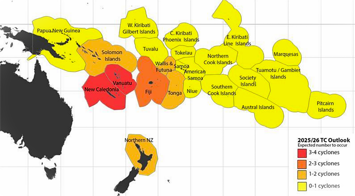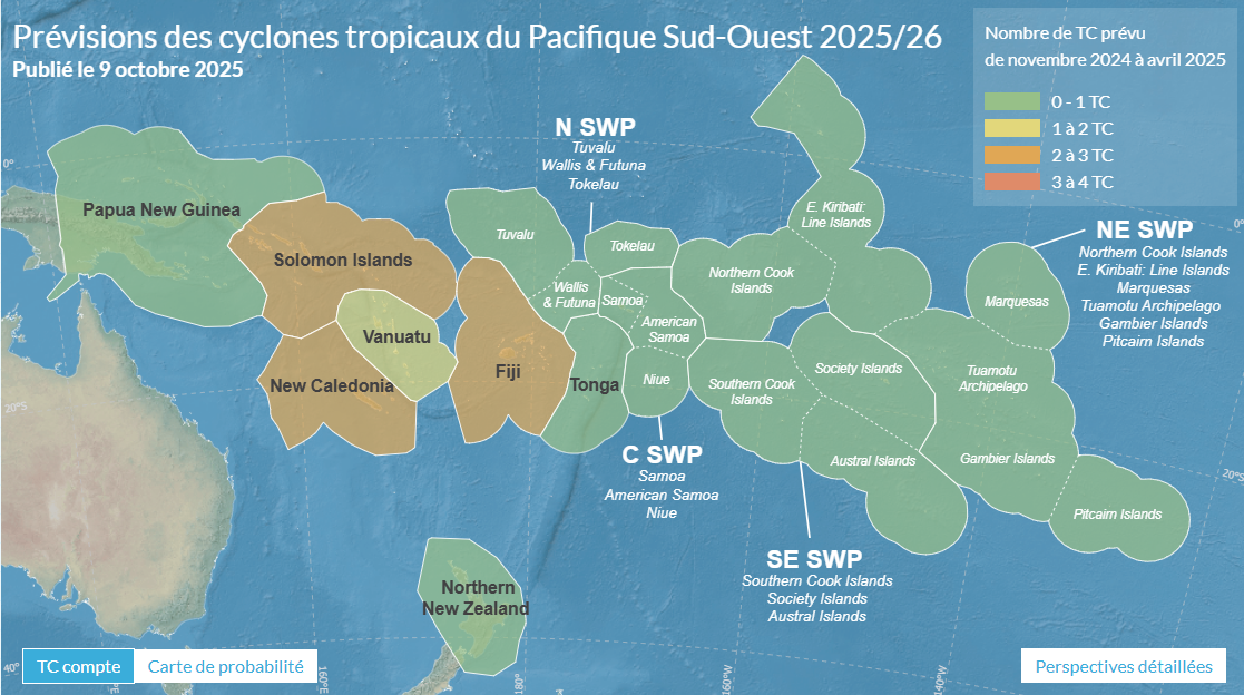 - 5 à 9 phénomènes nommés pourraient se produire dans le Pacifique Sud-Ouest entre novembre 2025 et avril 2026.